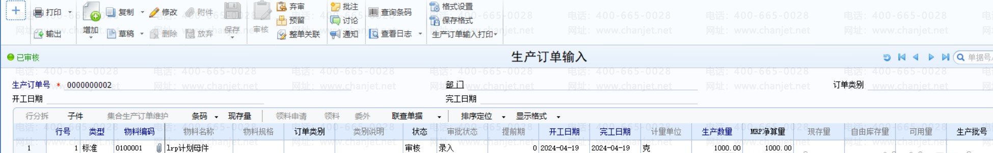 2、生成生产订单