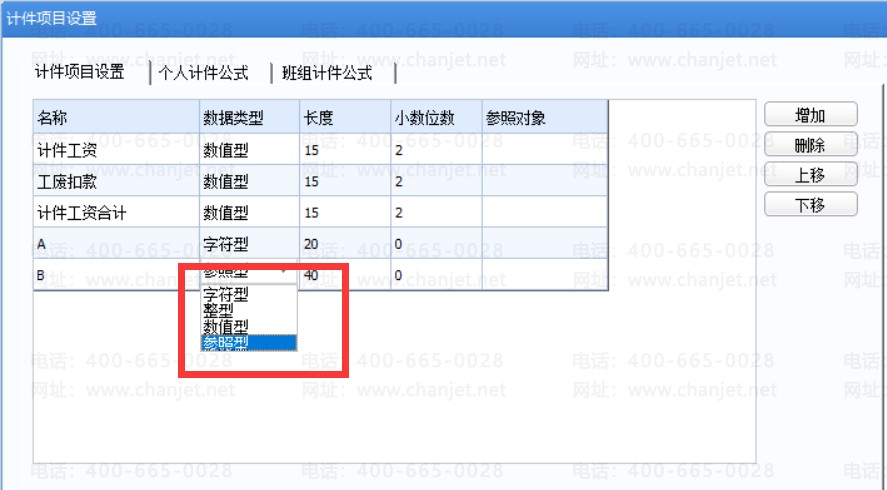 3、如果“计件项目”是来源于系统档案,可把【数据类型】维护为“参照型”