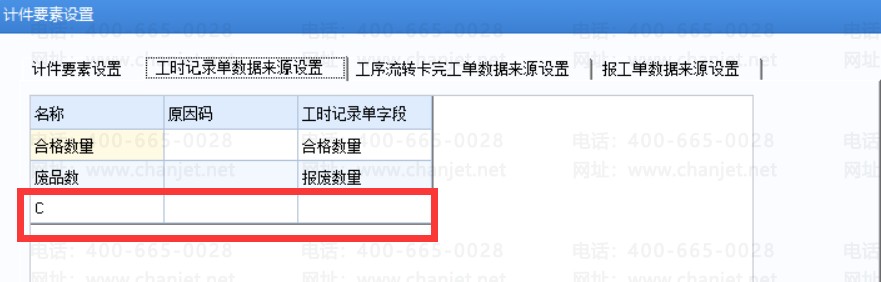 每个数量要素可对应多个原因码,但是一个数量要素不可以同时对应原因码和工时记录单字段。导入车间工时记录单数据时会自动根据数量--原因码的对应关系获取数据