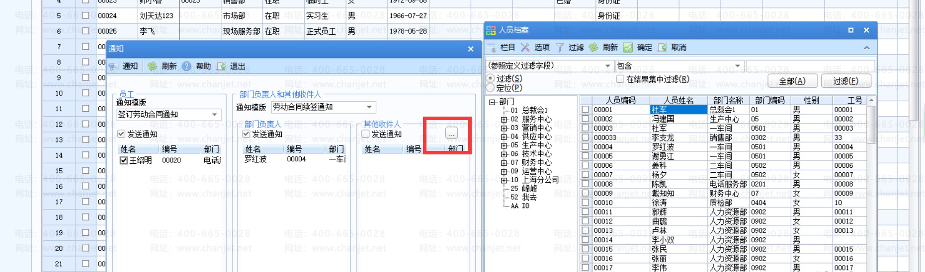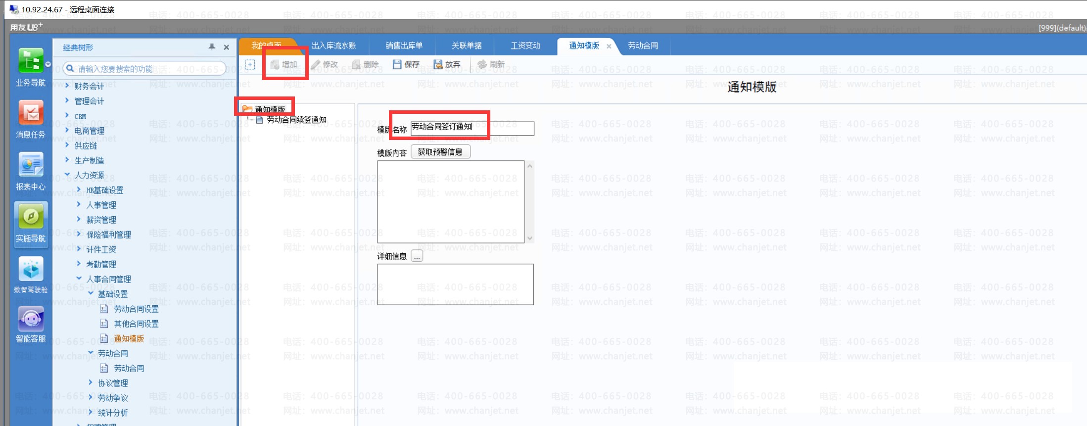 4、在劳动合同界面点击【通知】,发送通知到对应人员