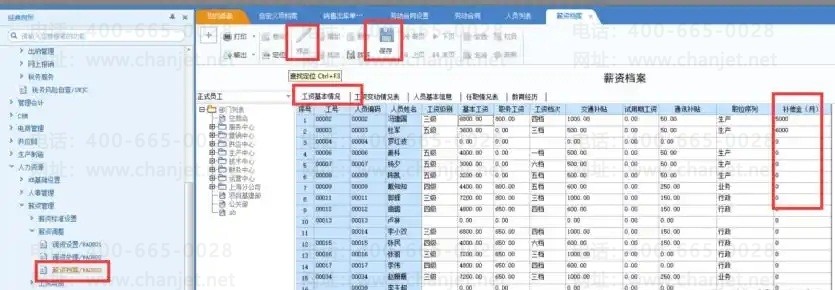 2.在薪资管理-薪资调整-薪资档案的工资基本情况页签里,点击修改,录入对应人员的【补偿金(月)】的金额;