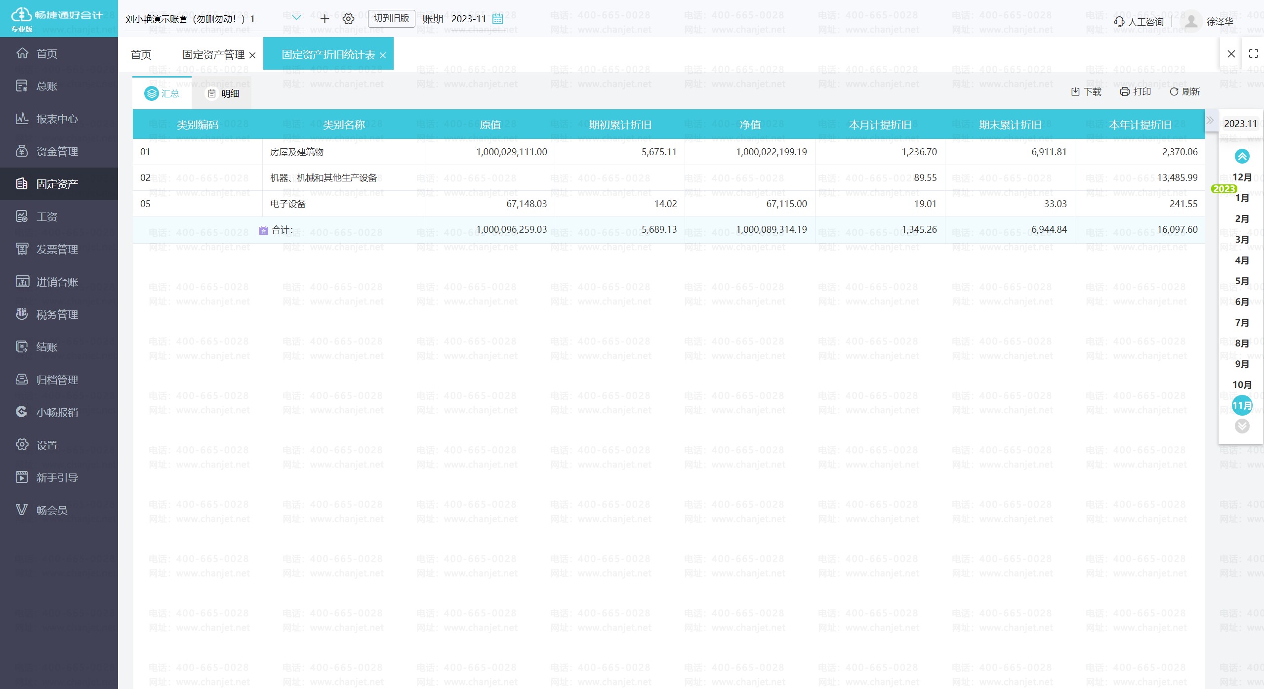 具体描述:用户可以通过此模块录入固定资产卡片、记录增减变动以及计算折旧费用。