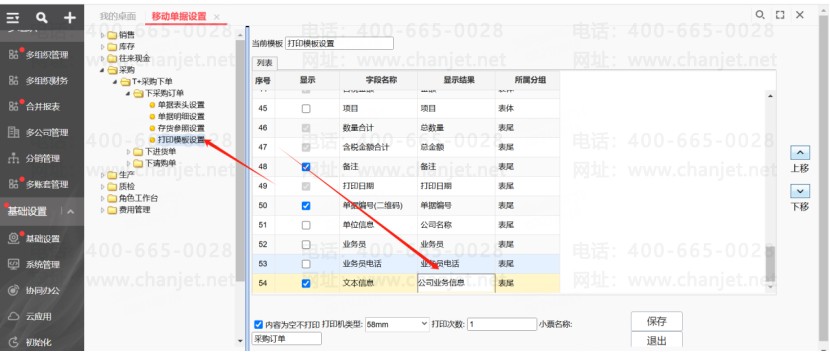 打开【系统管理】->【移动单据设置】->对应单据的打印模板设置->勾选显示文本信息字段