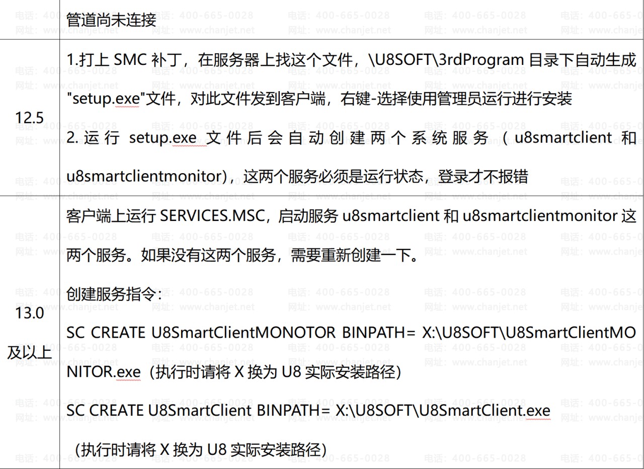 问题原因:U8smartclient和U8smartclientmonitor服务未启动或缺少