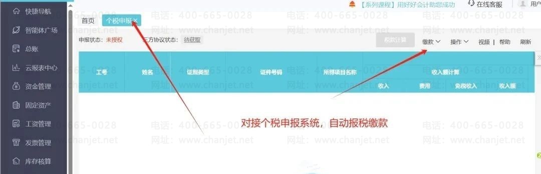 支持全国个税一键申报!系统自动生成工资表与个税申报表,精准计算、快速申报,轻松完成缴纳。