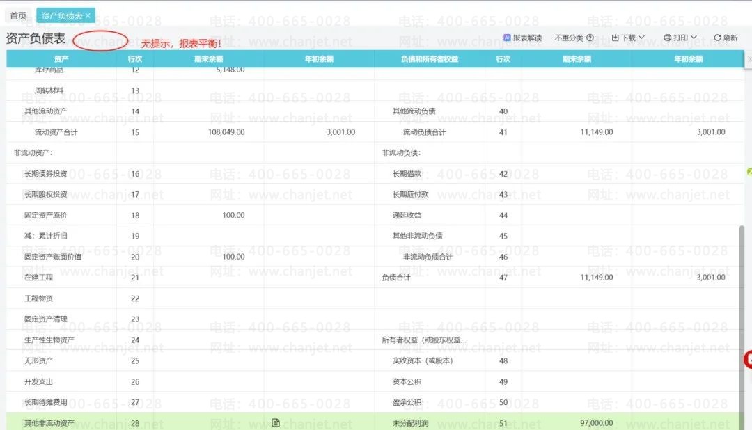 快速调整报表: 提供多种不平衡提示及解决方法,从期初资产不匹配到损益科目期初余额问题,一键解决。