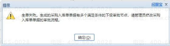 T+进货单自动生成采购入库单如何分开仓库生成不同的采购入库单?设置了采购入库单的审批流程,因在不同的仓库,提示如下图: