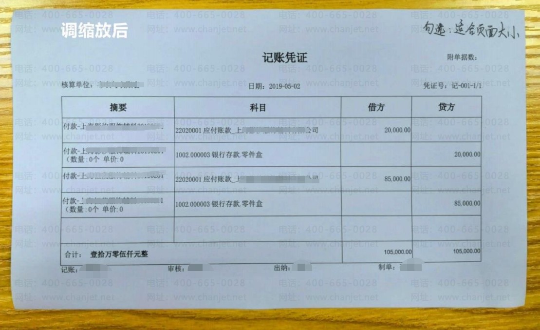 当用户使用 PDF 打印的效果偏左或者偏右,可以使用缩放微调。如下图 PDF 发票版为例: