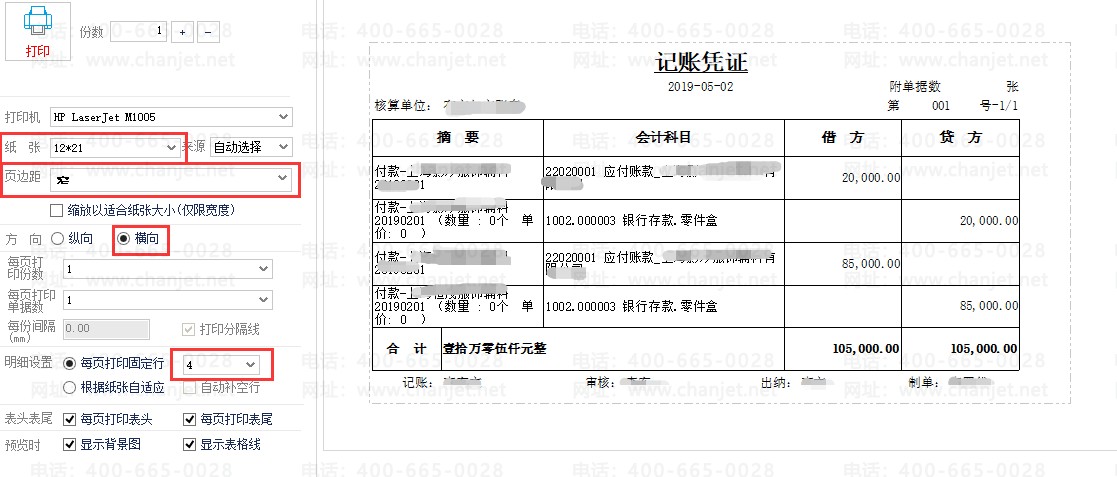 普通 A4 纸,可以选择打印一版,相对 PDF 打印此种相对灵活,可以调页边距、打印的分录数等。