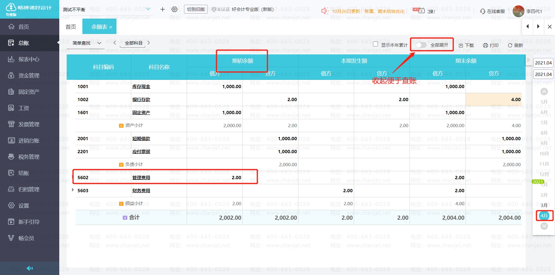 结账的时候提示资产负债表不平衡,到报表中心点击不平衡提示【损益科目本期有期初余额】