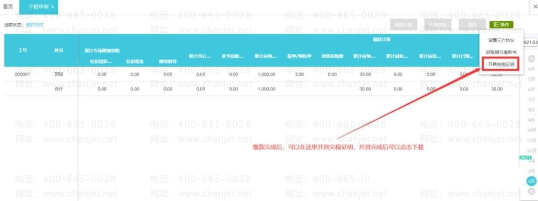 当缴费成功之后,点击【操作】-【开具完税证明】可以查看并下载完税证明。