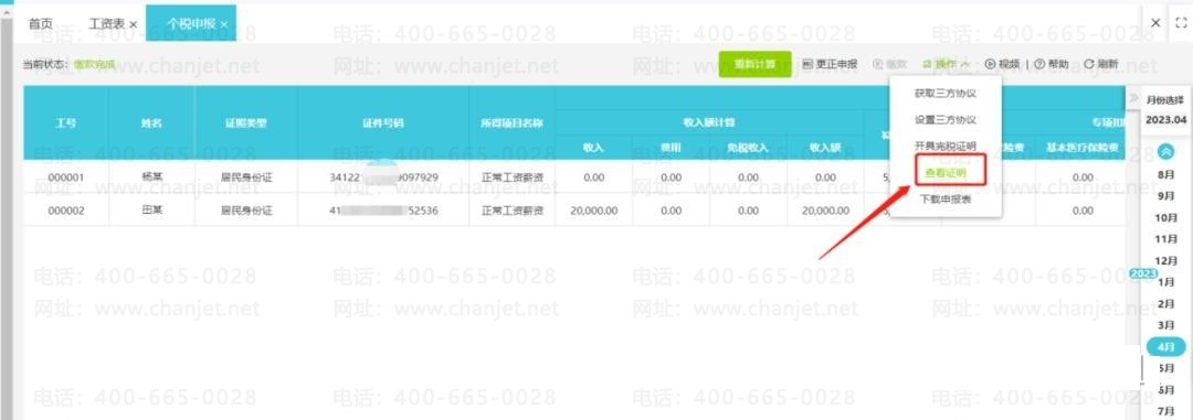 申报成功但未缴费时,可进入个税申报界面,点击【操作】-【申报作废】进行撤销。