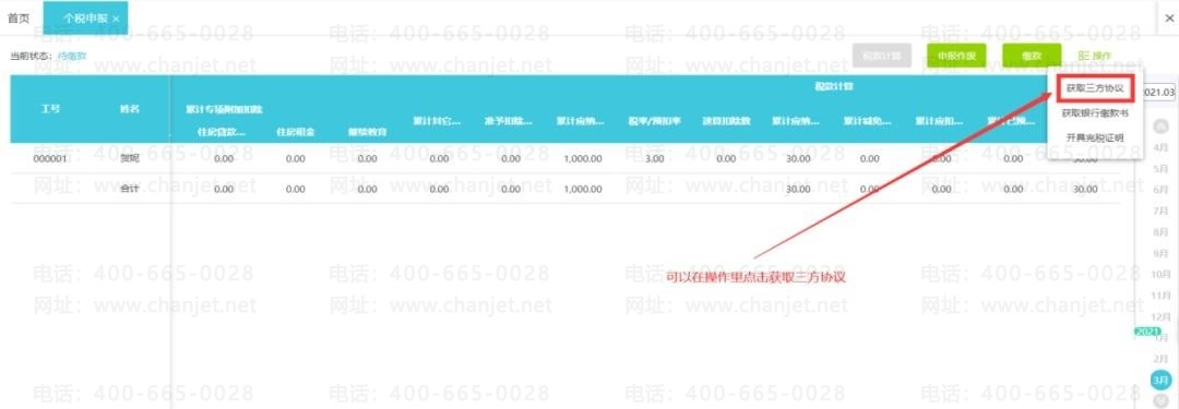 在操作中选择【获取三方协议】,成功后可对单个客户设置缴款银行。也可选择【获取银行缴款书】,下载后前往银行线下缴款。支持缴款作废。