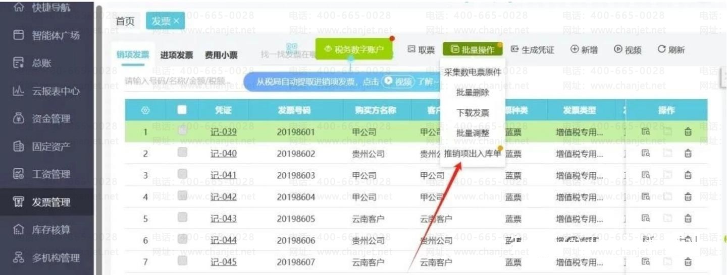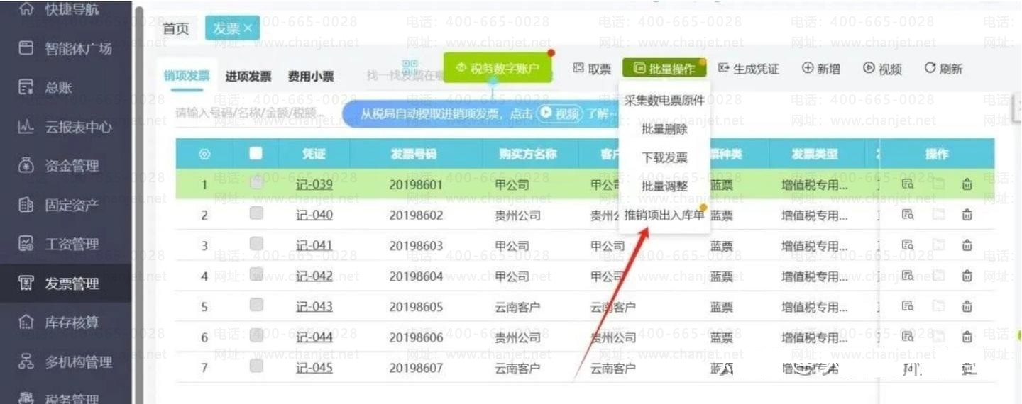 A.进销项一键导入:系统支持一键批量导入数百张进销项发票。