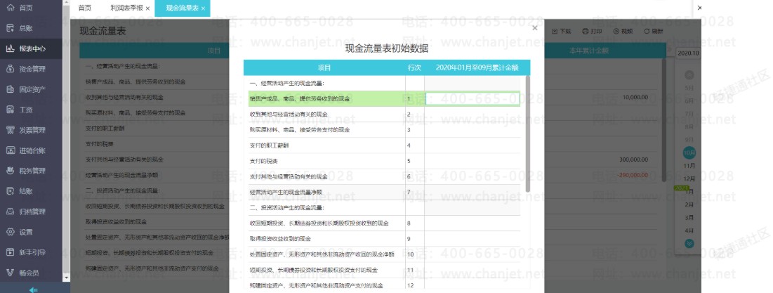 温馨提示:如建账日期非1月,则按上图进行操作录入,若建账日期为1月,则现金流量表期初数据,不需要录入。