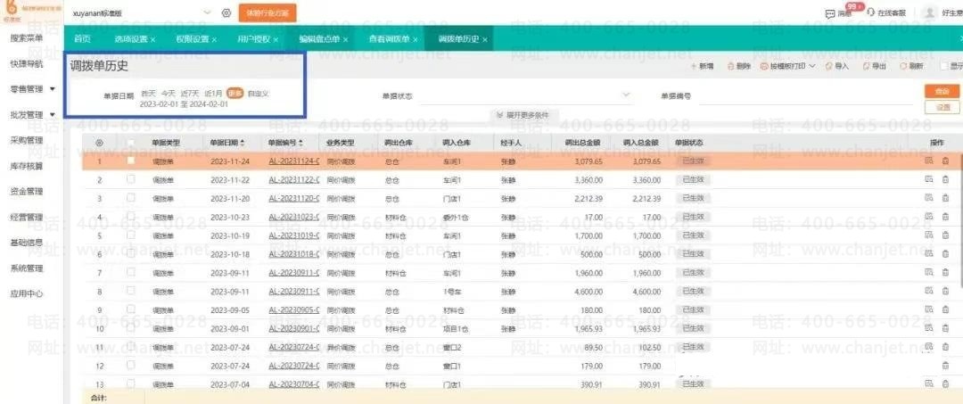 调拨:经常需要商品从一个仓库转移到另一个仓库的情况,从而保证销售、原材料的需要,商品数量及成本会因为调拨发生变化。