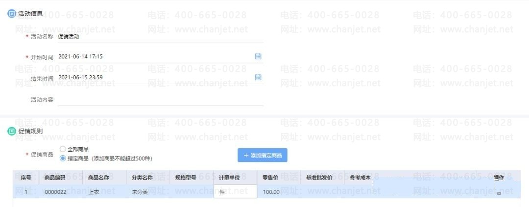 在进行销售业务时,为了促进商品的销售,所以会在不同的时间段对不同的商品进行促销,比如六月活动,零售价100元的上衣,1件7折促销,2件5折。