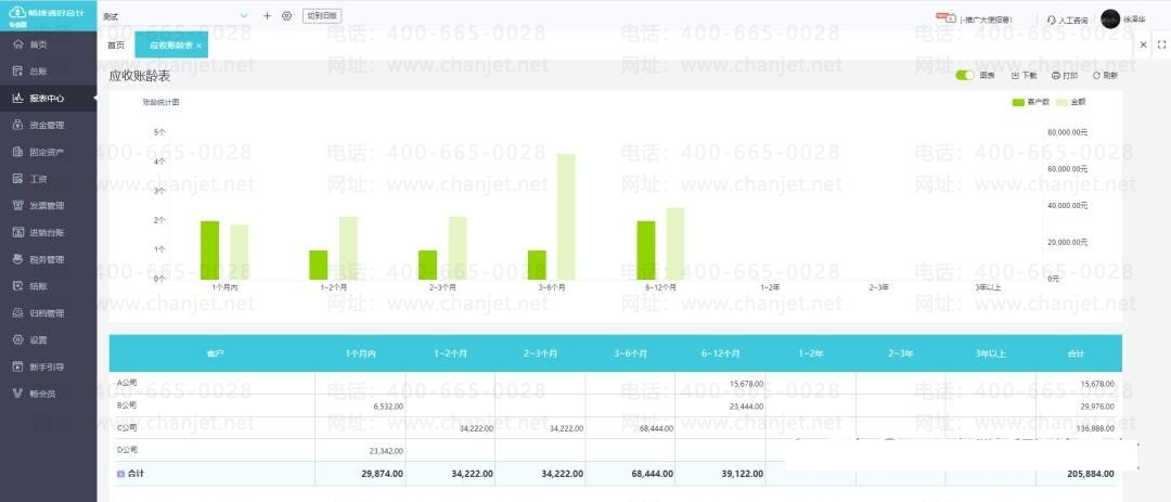 进入【报表中心】-【应收账龄表】直接查看各客户的账期情况,同时【应收统计表】也可以查看整体的应收数据。