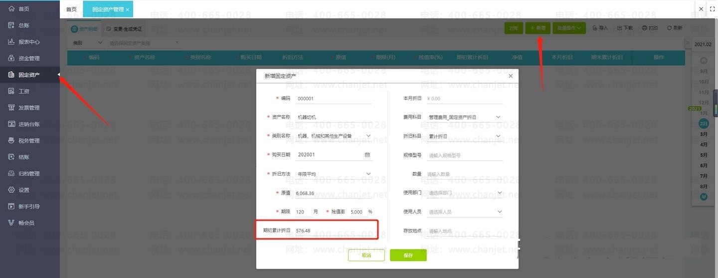 l 费用科目、折旧科目系统自动带出,支持修改,本月折旧无需填写,系统会自动计算,其他信息不强制填写。