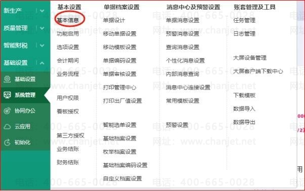 1、系统管理-基本信息中填写好用户的单位全称、账套名称、税号、报税地区、纳税人性质等