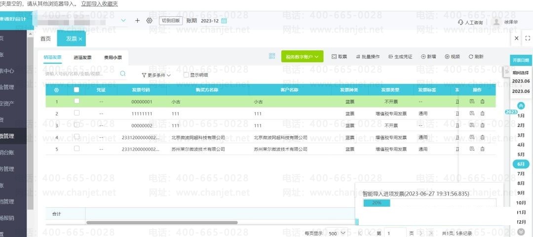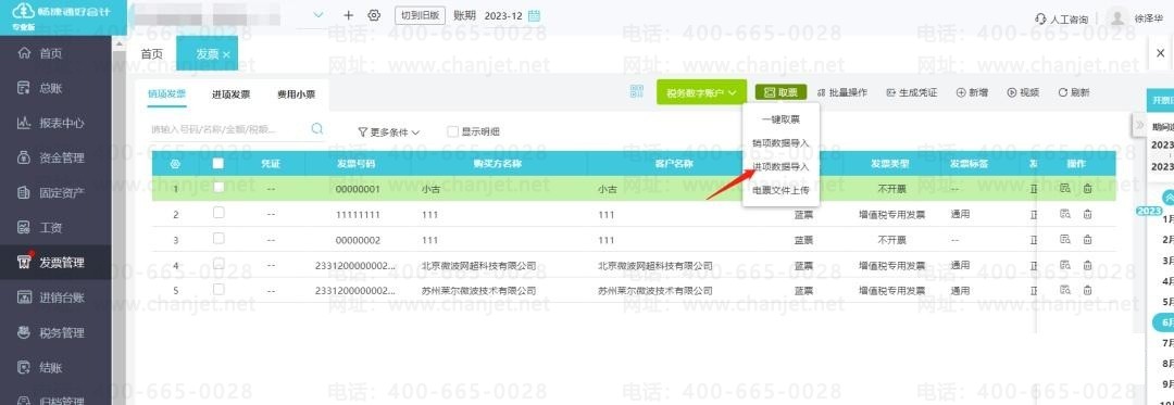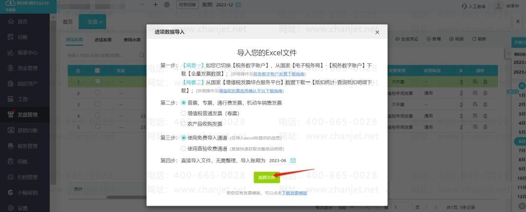 此处的账期也就是需要将发票入账的日期,如果一旦选择错误的话,会导致发票进入其他月份,如果发现如果出现导入发票成功但是进系统没找到的话一般就是导入的时候没注意账期的选择,导致发票进入了其他月份,这个时候可以根据发票号在其他月份查找。