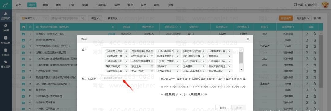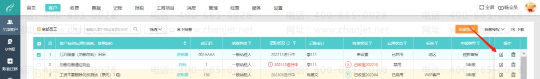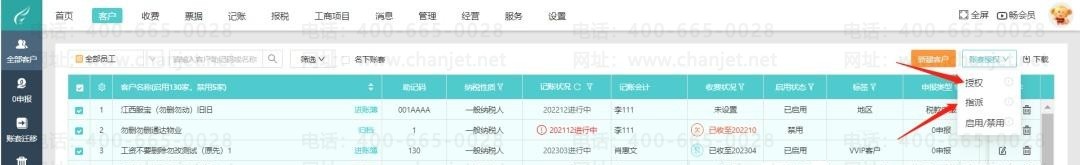 2、进入【客户】,勾选相关账套,点击右上角【账套授权】,给新会计分配账套;