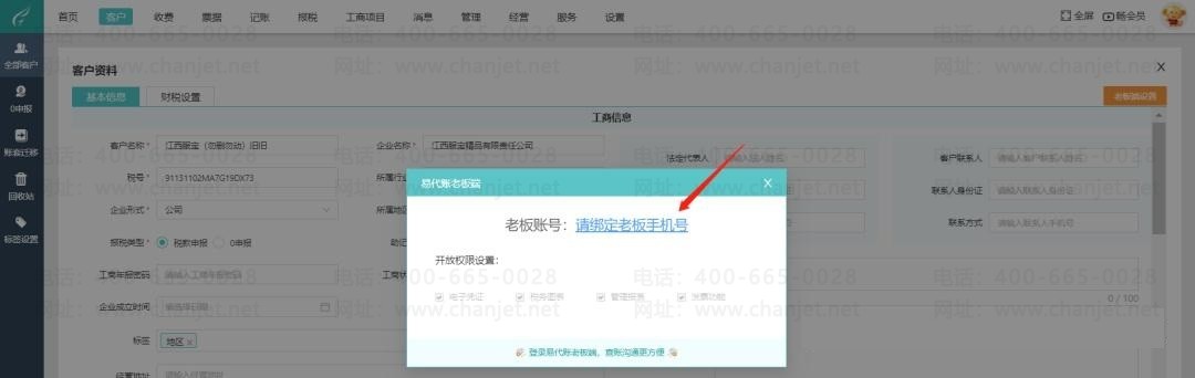 在【工作台】界面,勾选账套,点击【编辑】-【老板端设置】,绑定老板账号,后期客户可以直接登录易代账查自家公司的数据,数据间相互隔离,安全安心。