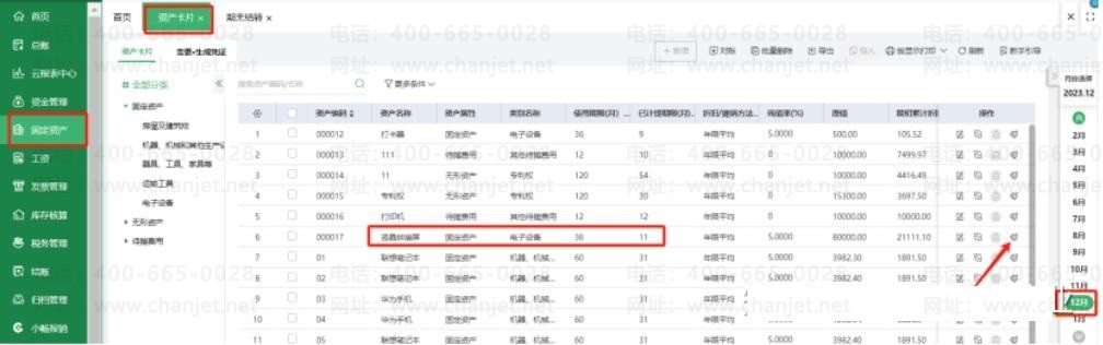 我们回到【固定资产管理】中,在录入期间后面点击小扫帚的按钮