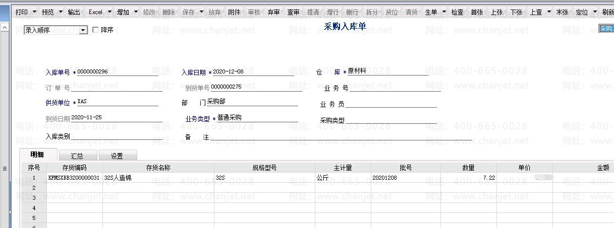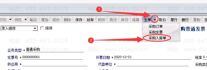 第一是直接手工增加,第二种是通过采购入库单或者采购订单,自动生成,生成之后再进行修改,这样的好处有两个,一是可以根据采购订单、入库单、发票之间互相追溯联查,二个就是不需要手工一项一项输入了,系统自动从采购订单或者入库单带入进来了。
