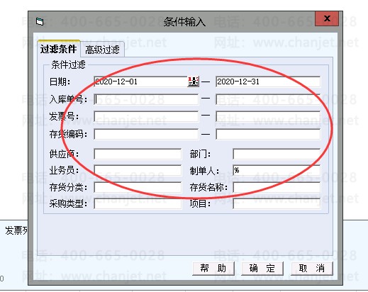点开左上角啊的过滤。过滤条件很多,你可以选某个供应商的入库单和发票,或者是固定的入库单号和发票号,或者某个时间范围的