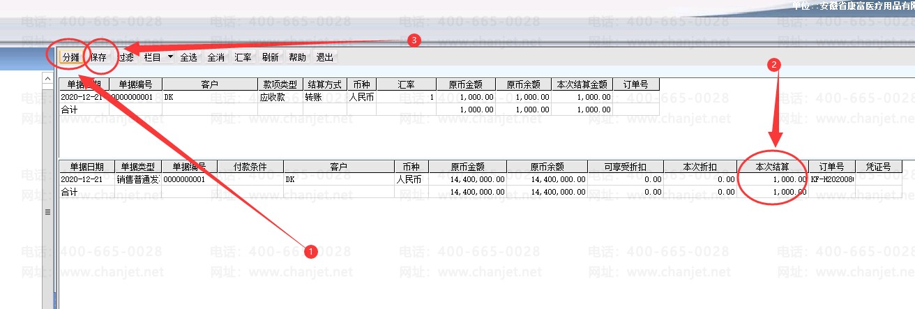 保存之后,下面的金额少了1000,下次结算就提示少1000不需要结算了。