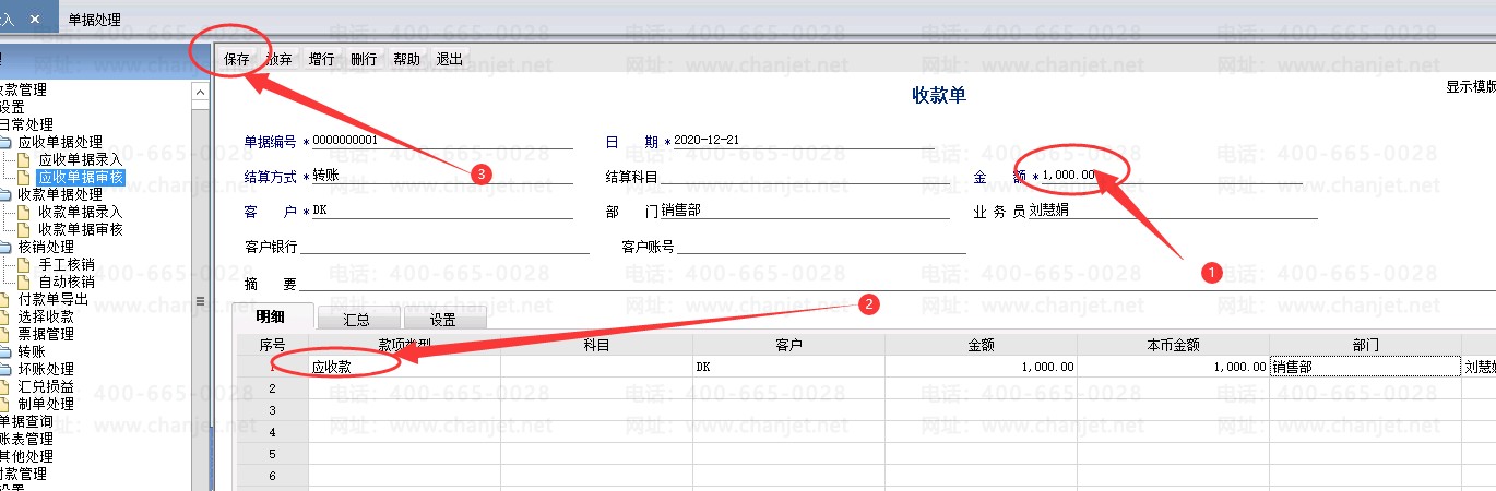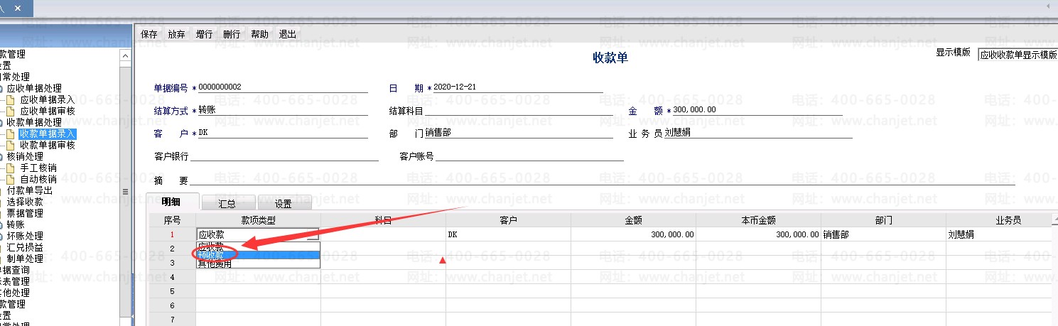 如果是预收款,那收款单的下面直接选预收款,然后保存,这个就是预收款单。