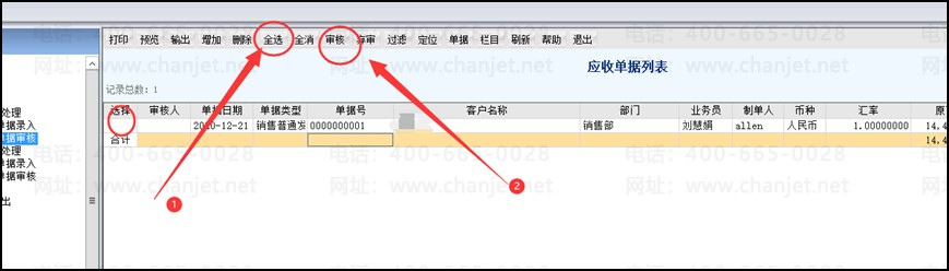过滤出来的发票,可以一张张选择,点审核,或者直接点上面的全选、审核即可。