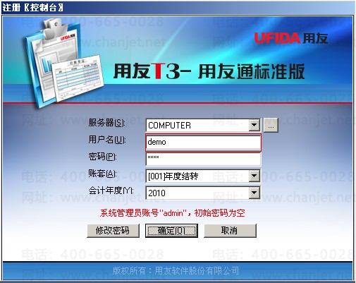 打开用友系统管理→用户名为账套主管(如下图)建立年度帐(账套主管就是平时登录T3软件做账,总账权限的那个账号,不是ADMIN)