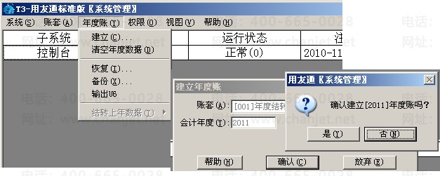 (2)、在进行2010年度账的建立后,在结转上年数据完成之前,建议不要对2009年度及其2010年的基础设置进行改动。