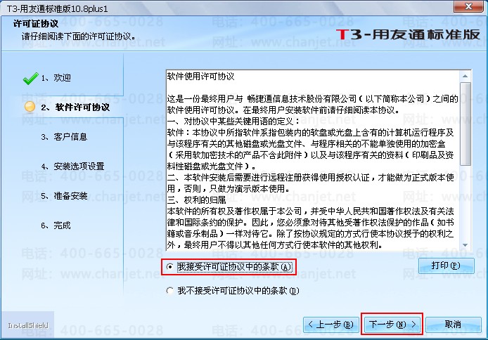 二、点击“下一步”进行用友通软件的安装。如下图所示: