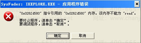 有时访问T+会出现“ysFader:IEXPLORE.EXE - 应用程序错误”的提示,提示内容为“0x0262d580指令引用的0x0262d580内存,该内存不能read。”,每次不一定相同,但是都是由于SysFader引起的错误。