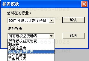 4、选择和自己帐套对应的会计科目准则,在财务报表处选择自己需要的报表:如利润表。点击确认。