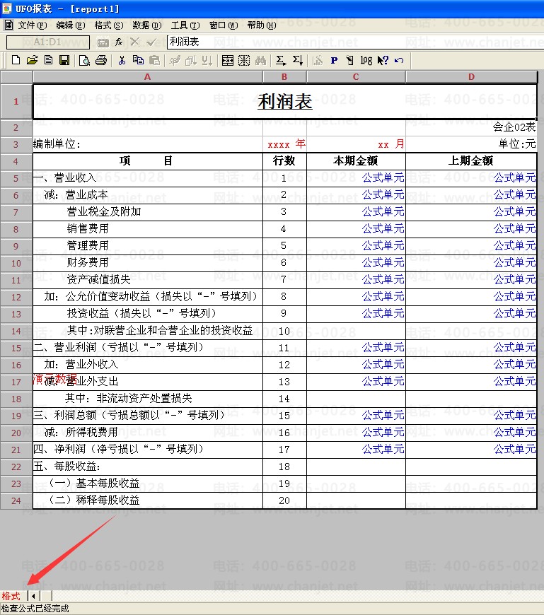 6、 点击左下角的格式将其转为数据状态便可以重算报表了。
