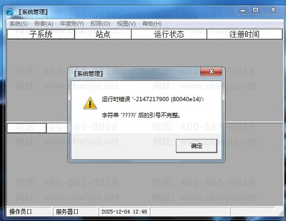 安装用友t3登录系统管理显示运行时错误'-2147217900(80040e14)":字符串'????1'后的引号不完整