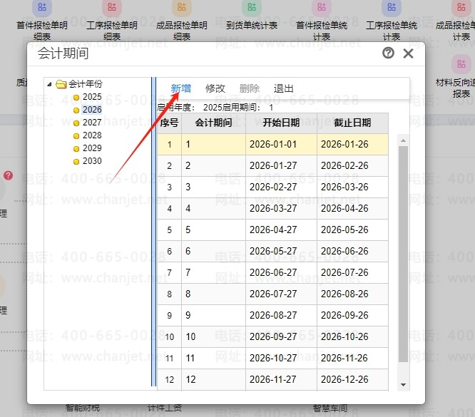 友情提醒:如果您的T+无法登录,那是因为没有建立新的会计期间,请将登录日期修改成2025年,然后按以下步骤建立2026年度会计期间即可。