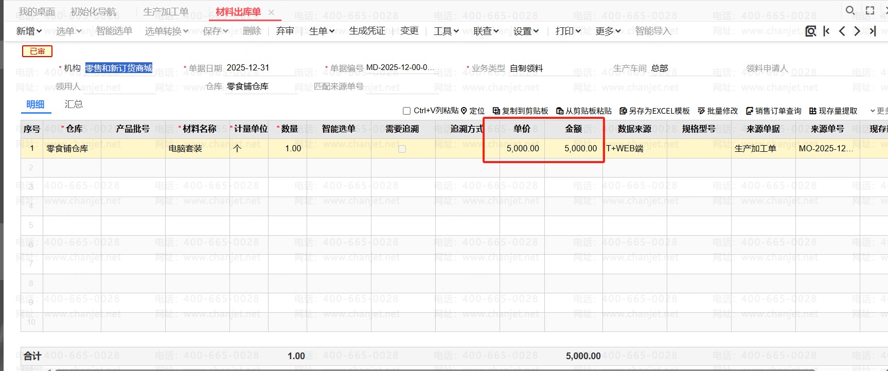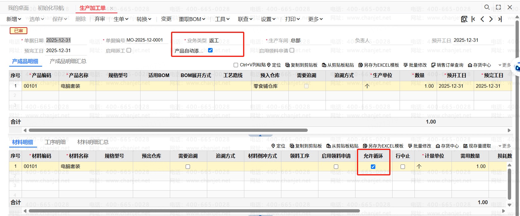 返工时材料出库是循环材料,不按存货计价法带出库成本,按选项设置里的允许循环材料成本取值方式取值。