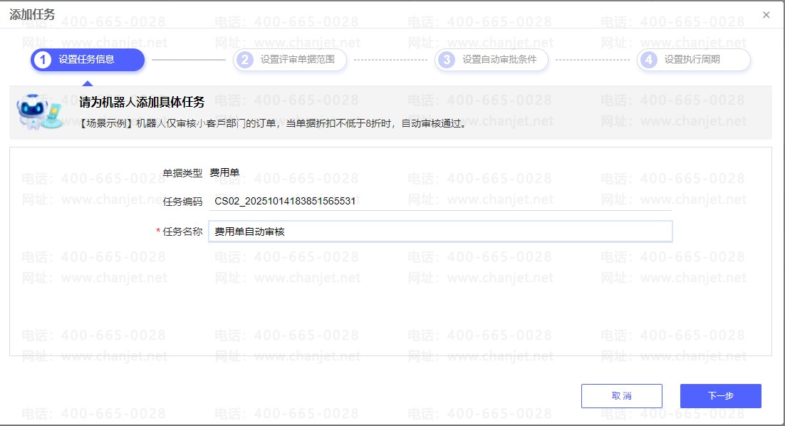 6.设置执行周期就是这个自动审核任务是什么时候自动执行,可以按照自己的要求设置对应的时间,点击完成并启用就可以。设置完成之后可以在审核流程方案下面看到。当我们填写对应单据之后,保存之后点击刷新即可看到对应单据会自动审核,对应的审核人员也是我们在设置评审单据范围里面设置审核人,若未指定则默认为"审批机器人"