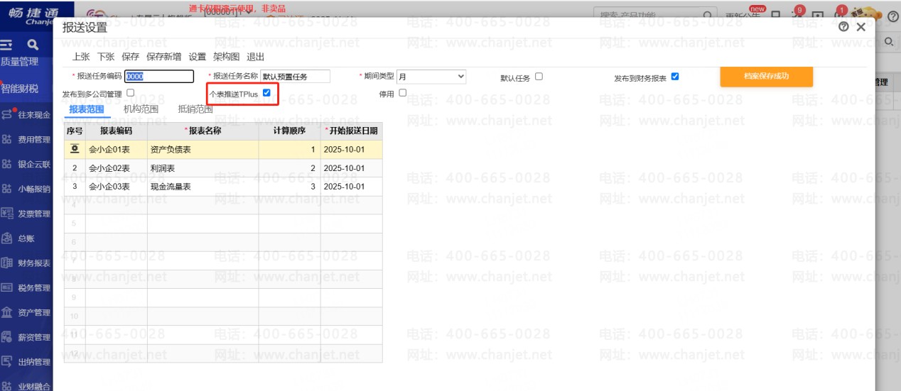 1.【财务报表】新增【报送设置】,设置【推送Tplus】.