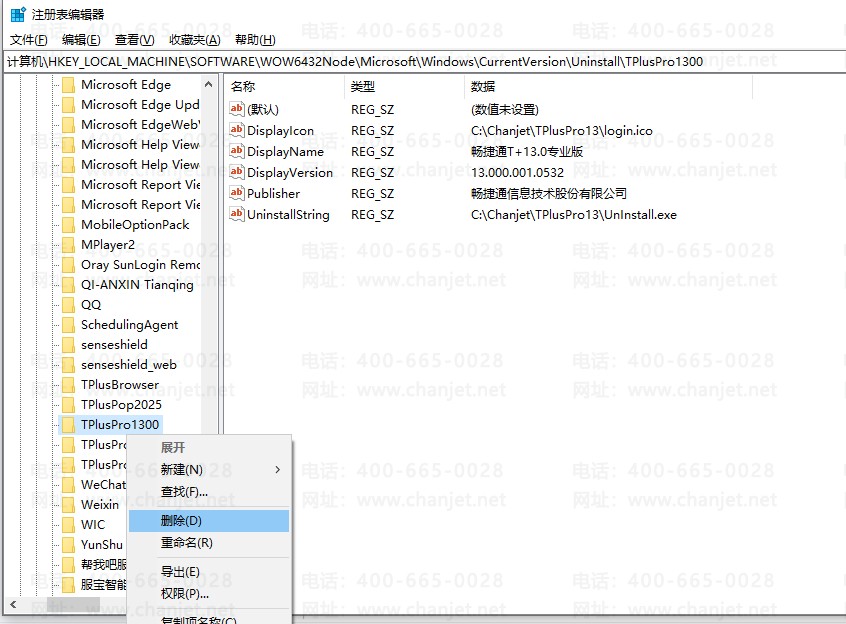 4.依次点开Uninstall下的文件夹,看看有没有对应T+的标志,如图所属,找到对应的带T+的文件夹的记录,点击对应的文件夹,右键删除即可