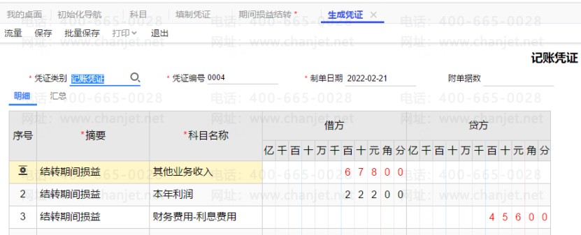 2. 收入类的科目填制贷方,期间损益结转的时候结转到贷方,当收入类科目填制凭证的时候是【贷方红字】或者【借方蓝字】的时候,就会出现结转后的凭证为收入类科目出现红字的情况。