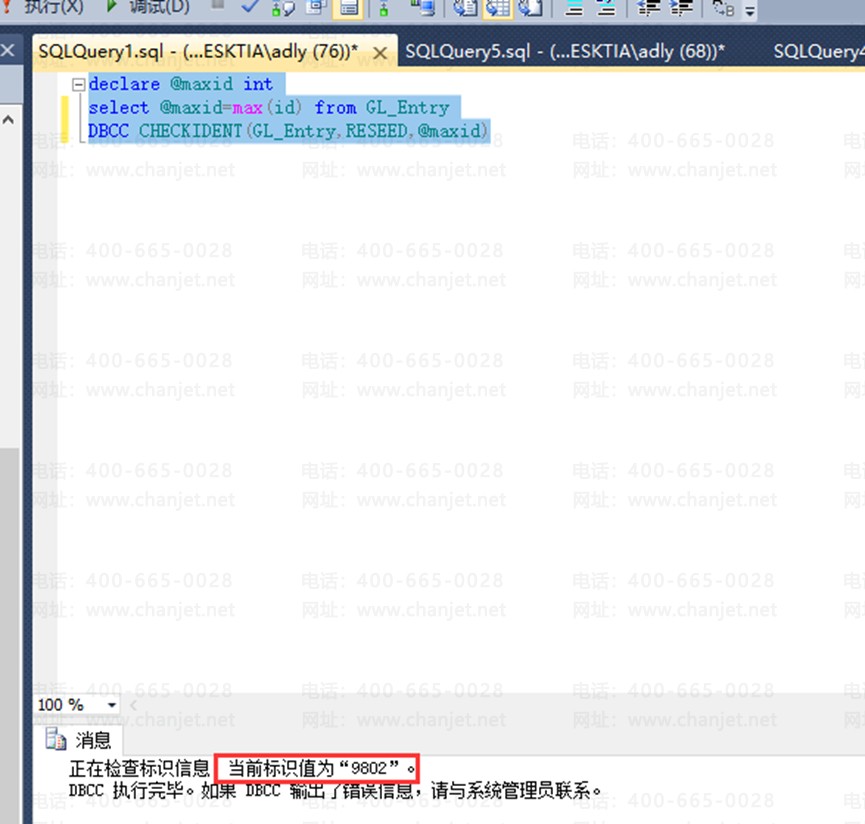 执行之后会提示,当前标识值为9802,例如:12.2等老版本操做在软件中提示不会提示重复键值为多少,恢复到13.0重复键值为9802,所以执行脚本之后当前标识值也显示对应9802。