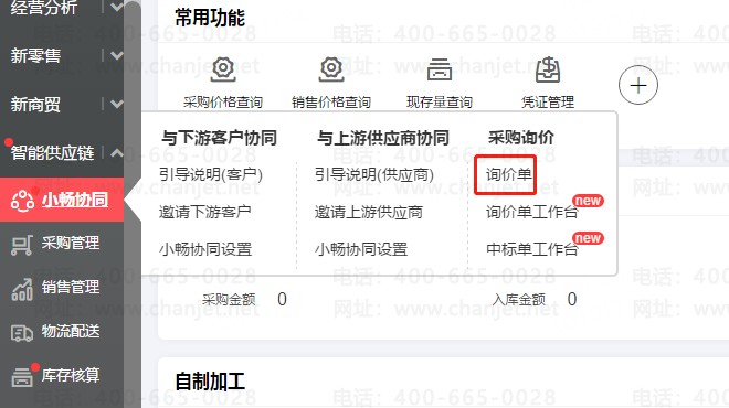 二. 企业采购人员在TC的小畅协同模块中新增询价单