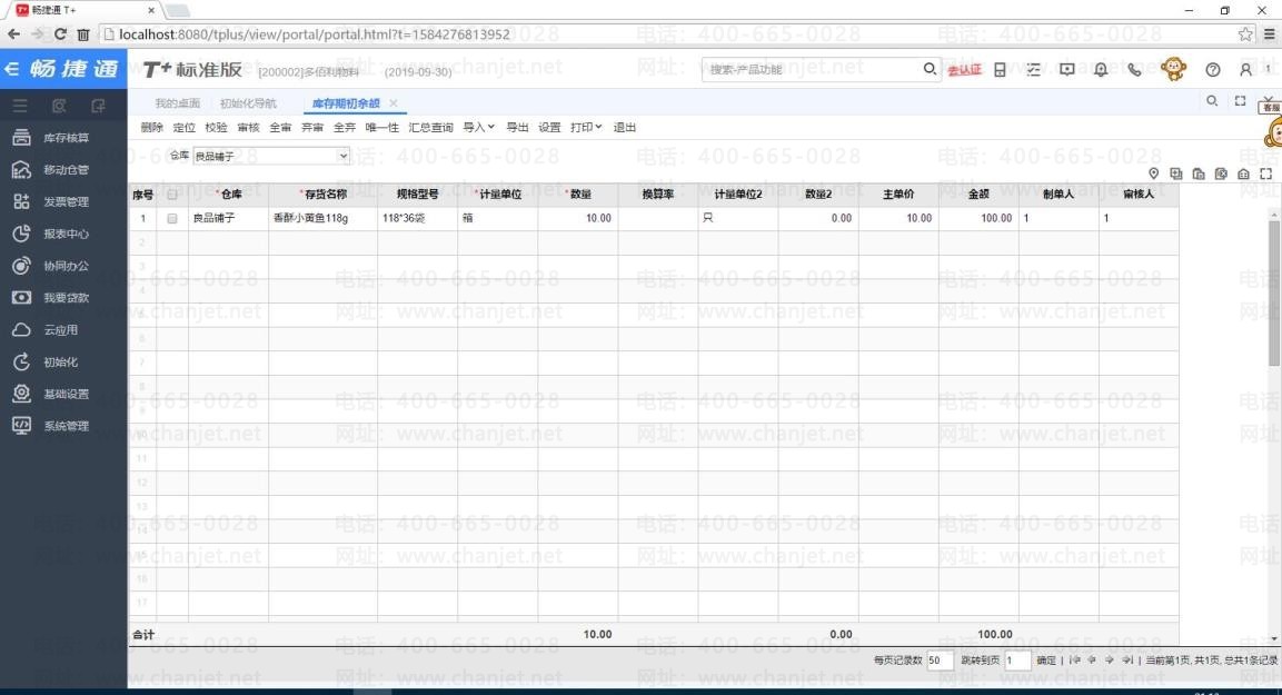 T+库存期初余额录入后保存不了