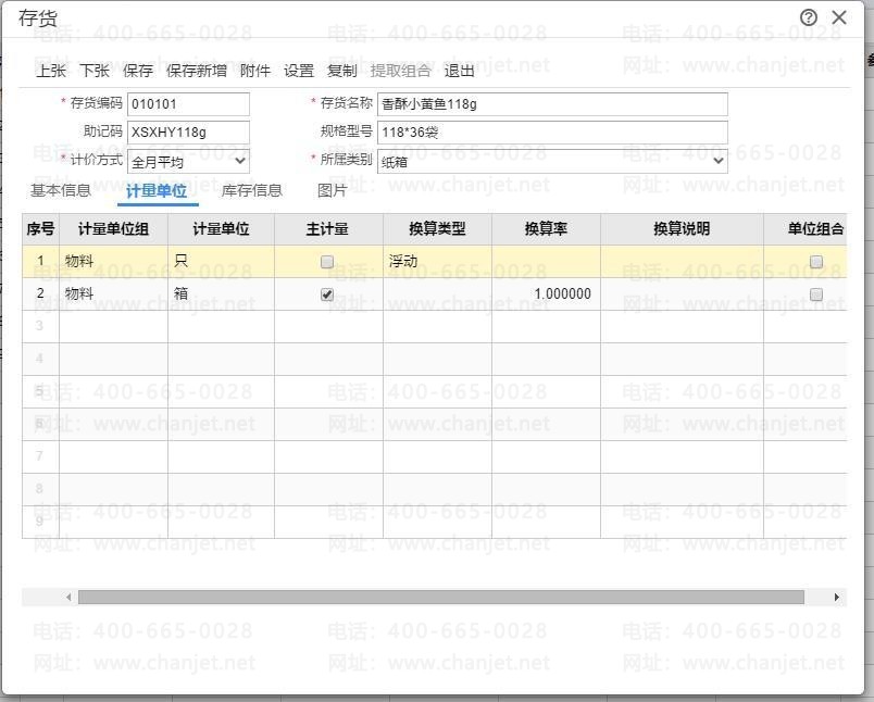 根据客户录入的存货名称在基础设置—存货模块找到此存货发现此存货为多计量单位的存货,并且辅助计量的换算率为浮动,如图所示: